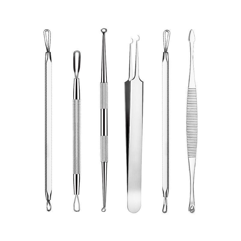 6/8 pcs antibacterial comedone extractor needle kit let you remove blackheads at home easily.