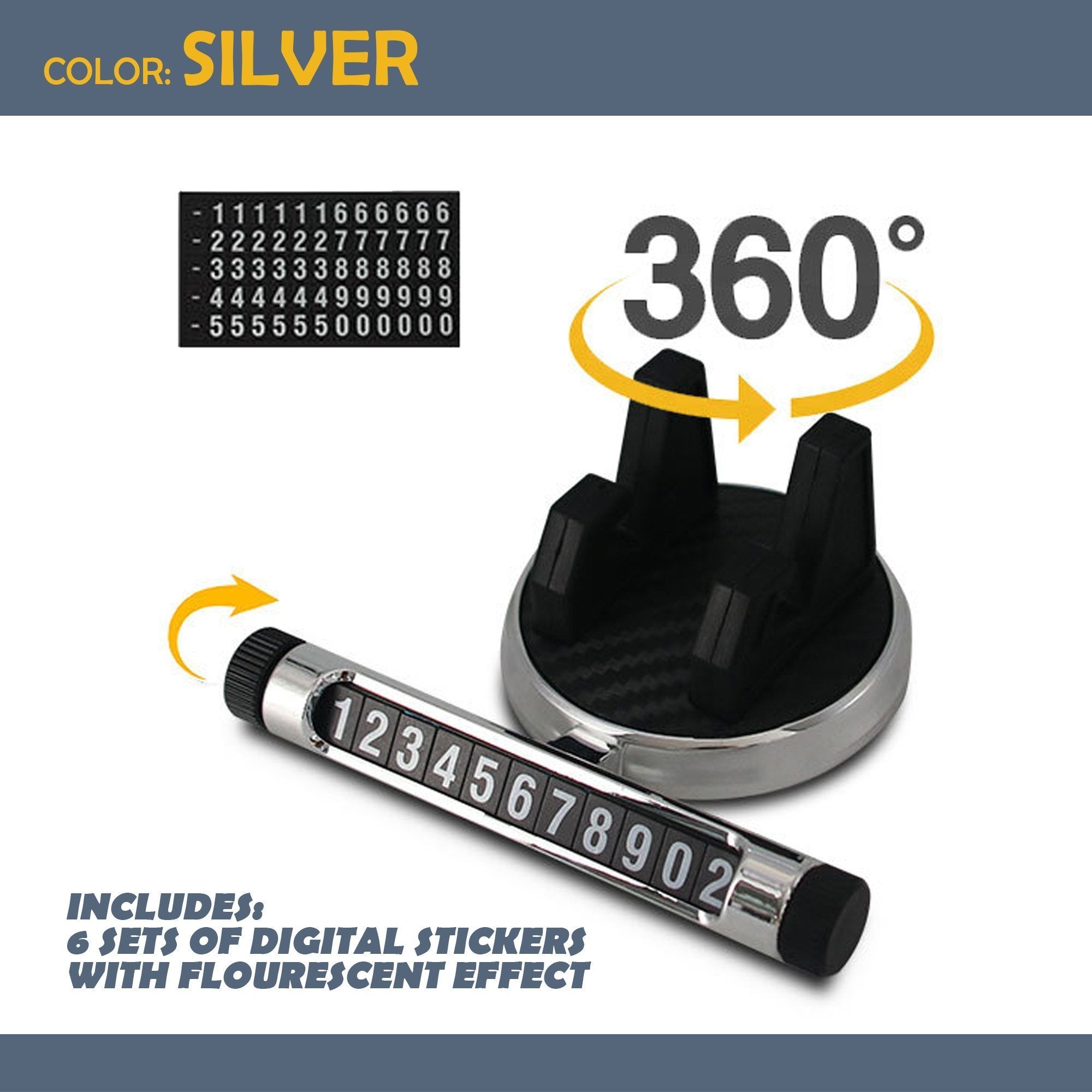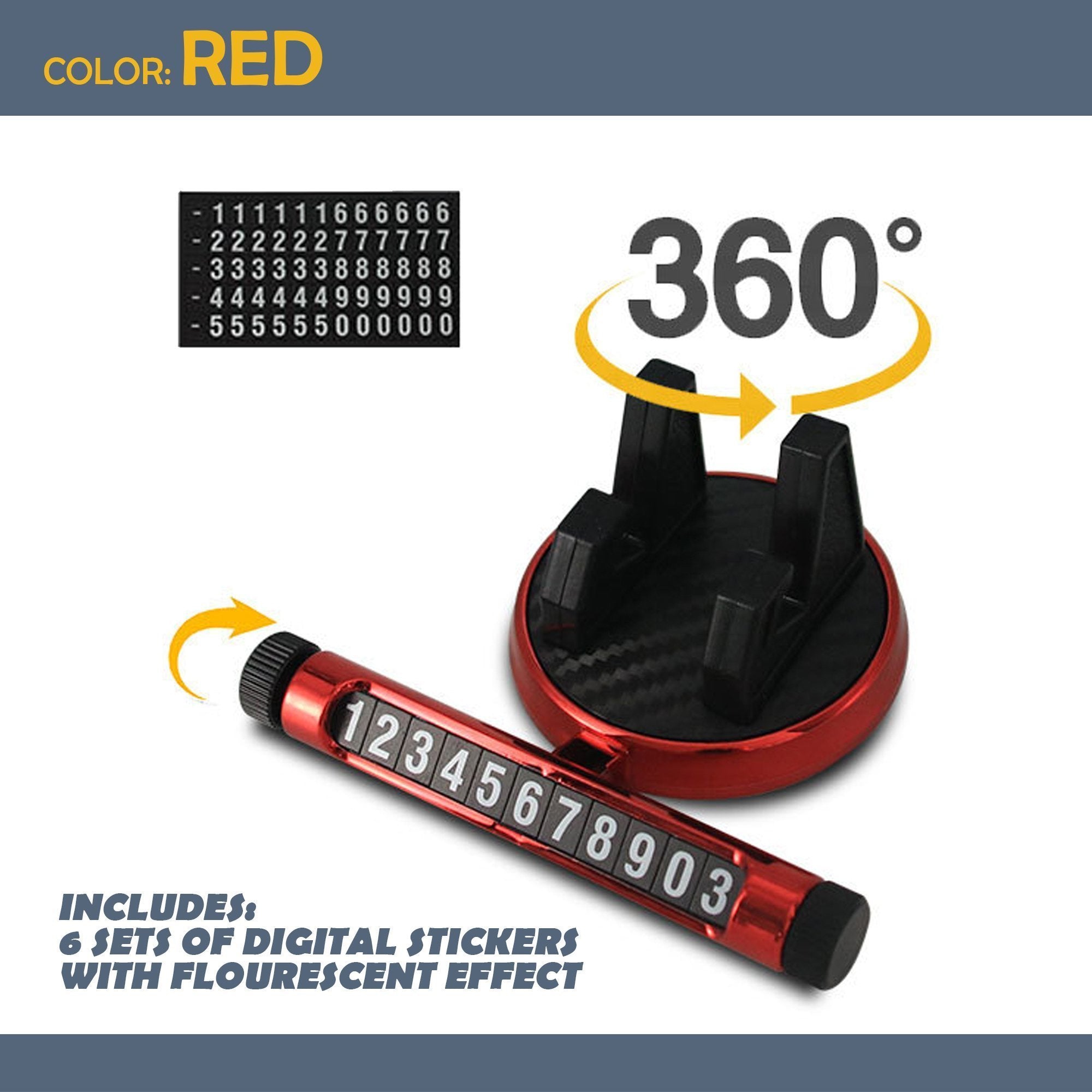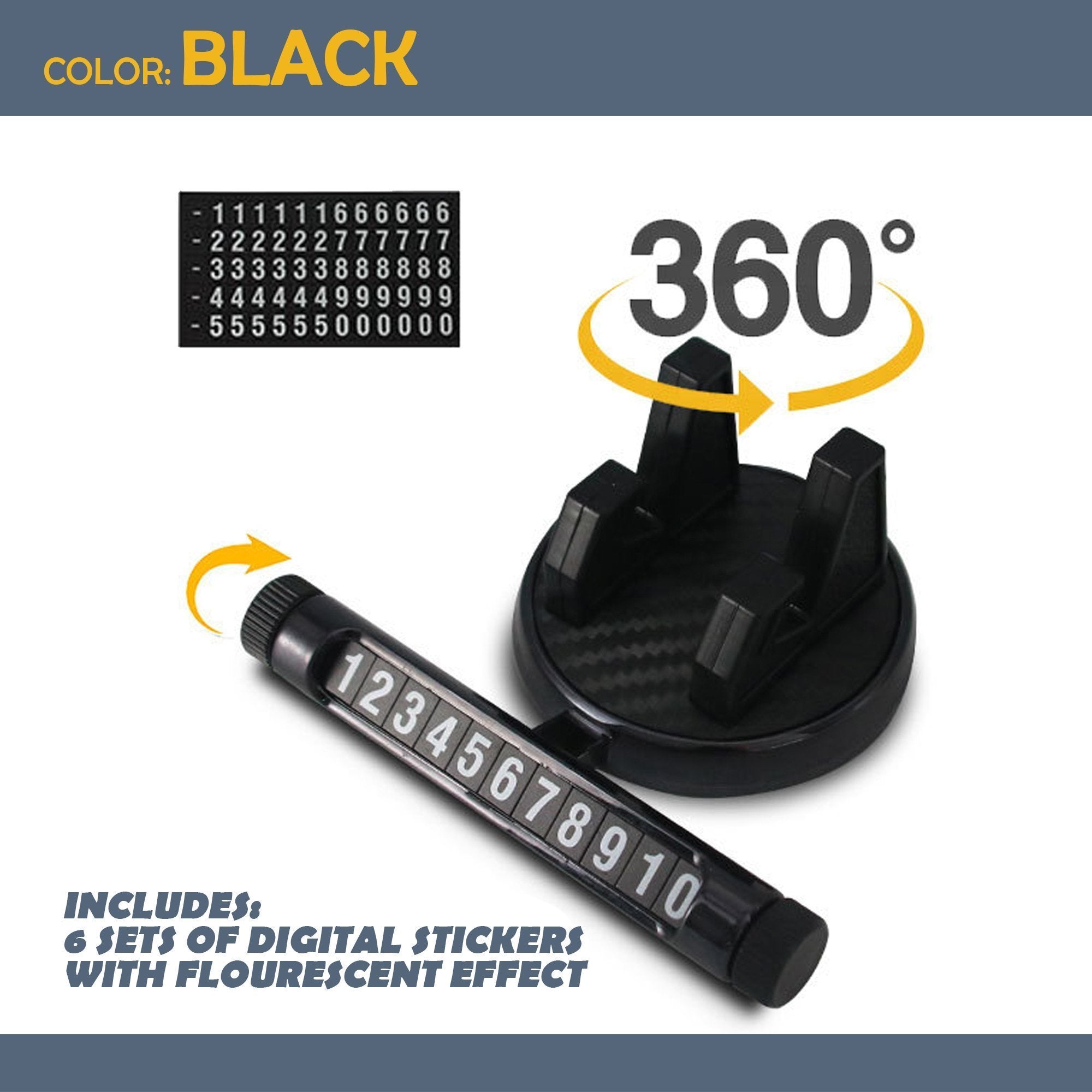 - ☑️ Rotary, luminous and hidden style. Rotary and hidden style luminous temporary parking number plate. It can bring you great convenience when you park temporarily. When you don't want to reveal your phone number, just hide it. There are 6 sets of 0~9 digital stickers, free to combine local numbers.