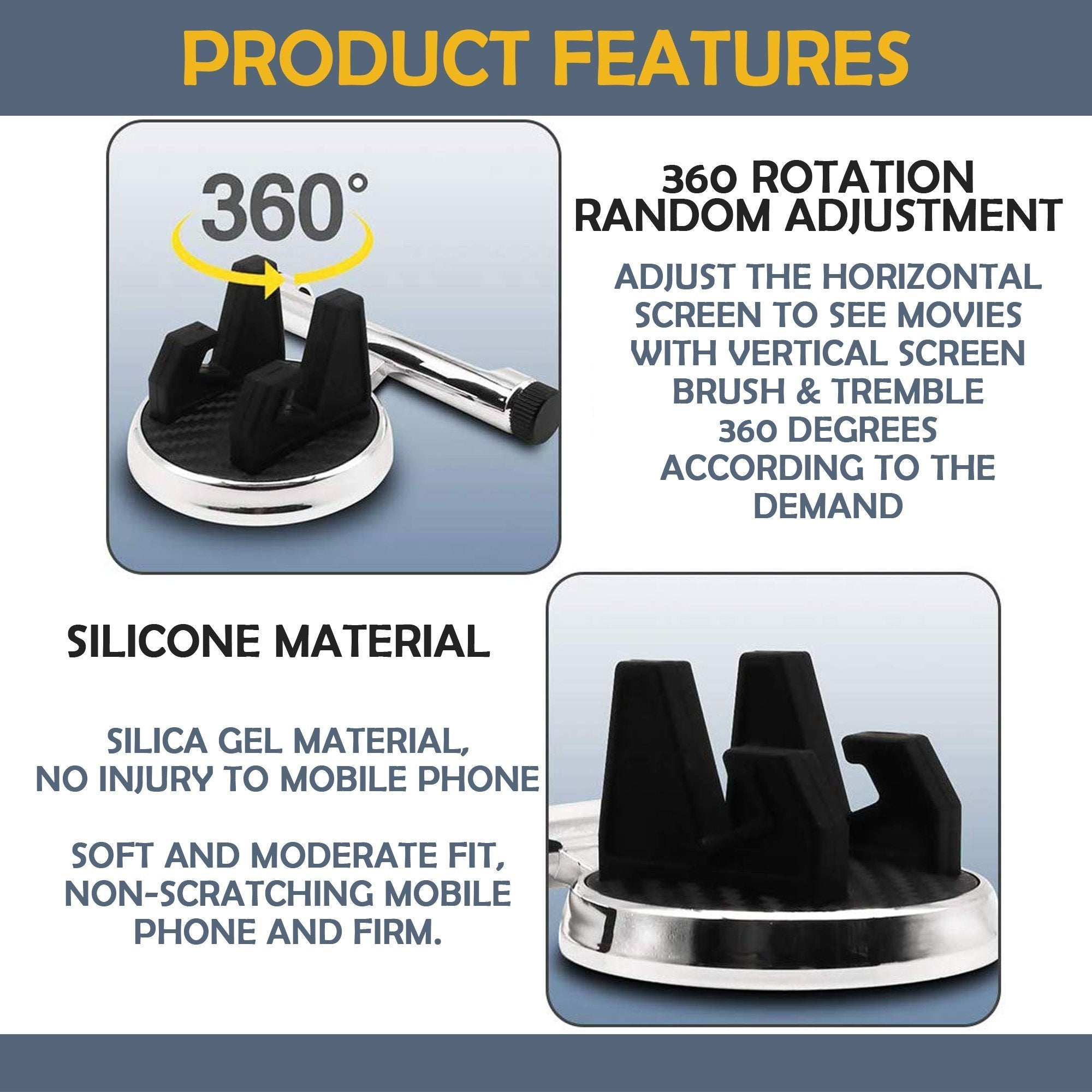 - ☑️ Portability. It can be taken off from the dashboard, one-hand operation easy to install, no tools needed. You can put the cell phone car holder in the best position for you to find nonlight reflection and a clear screen view. A car mount holder suitable for universal cellphone and GPS devices.