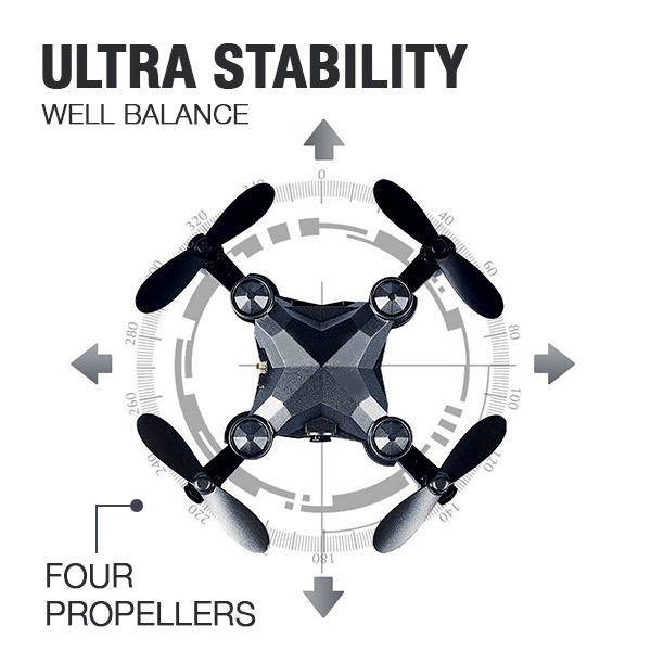 - Ultra Stability: There are 4 propellers in combine with the internal system, they provides great balance to the aerial vehicle to remain in a certain height and record stable videos in the air.