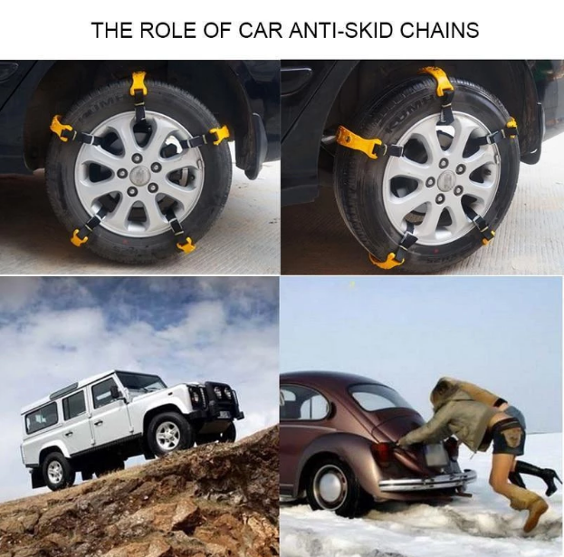Prevent your car from slipping this winter with Anti-slip Snow Chains. Easy to install and it creates no vibration. With the minimum braking distance and the maximum traction sliding, this product is a must for every car.