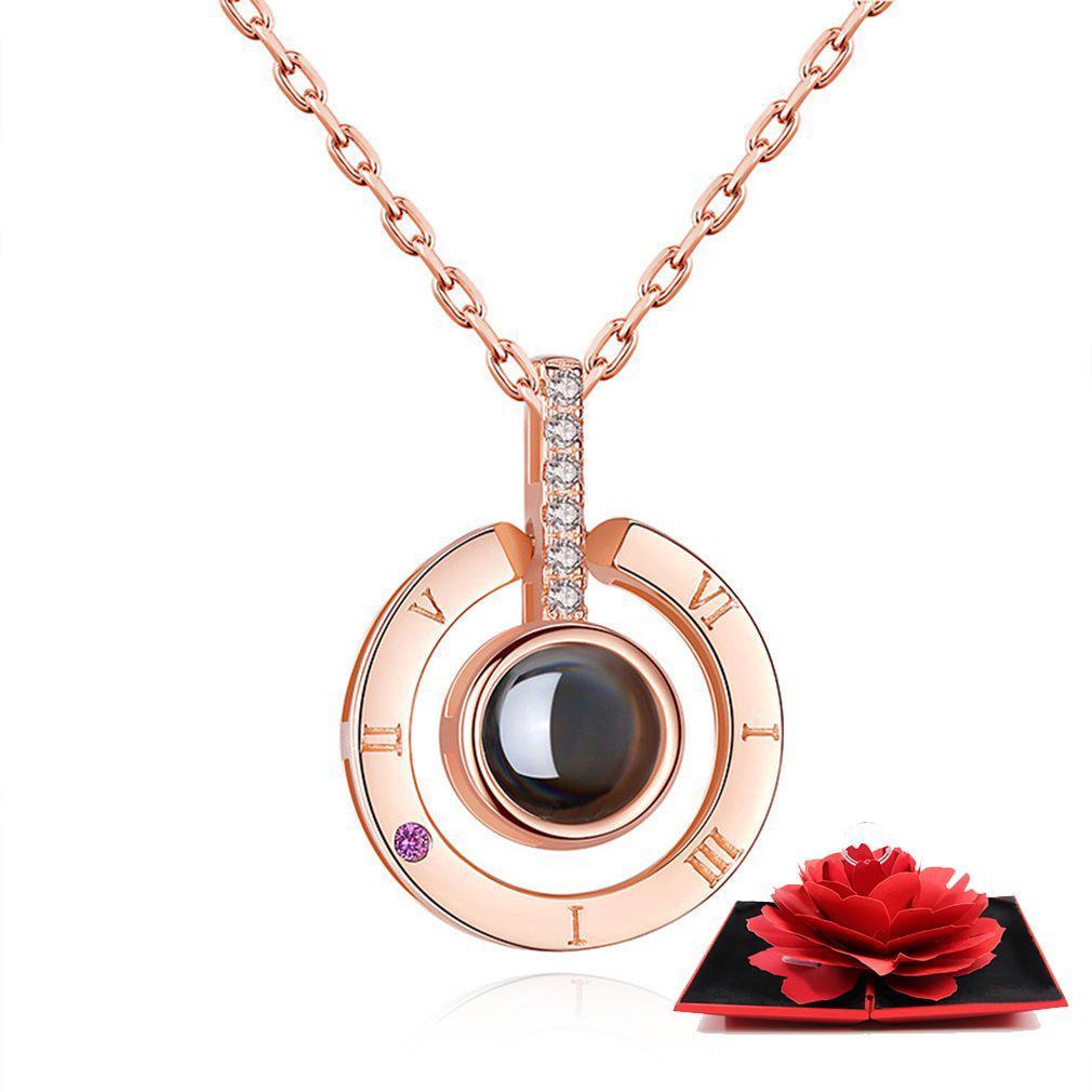 - Features "I Love You" in 100 Languages engraved through nano micro carving. You can see it through every standard camera/smartphone lens! Project the center heart at a black background with your camera flashlight to show your love.